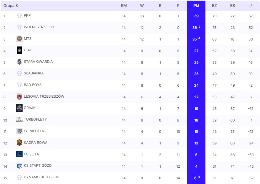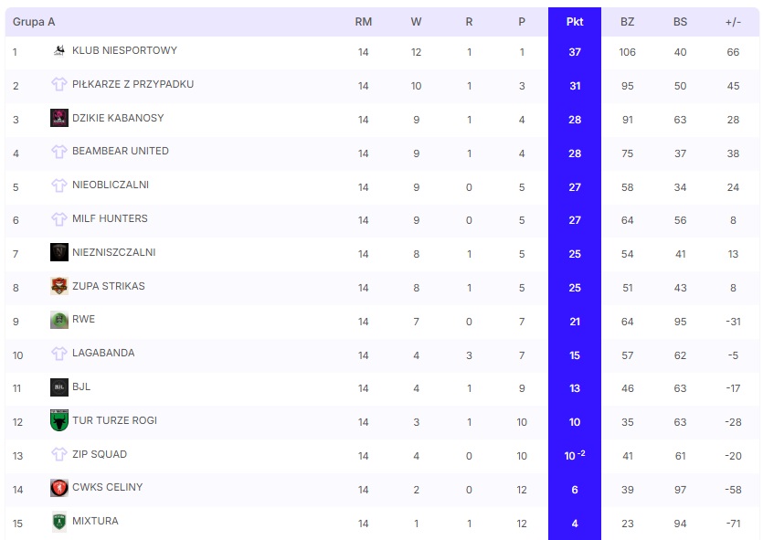 Po fazie grupowej do rundy finałowej awansowały po dwie najlepsze drużyny z każdej grupy: PKP, Wolni Strzelcy, Klub Niesportowy oraz Piłkarze z przypadku.