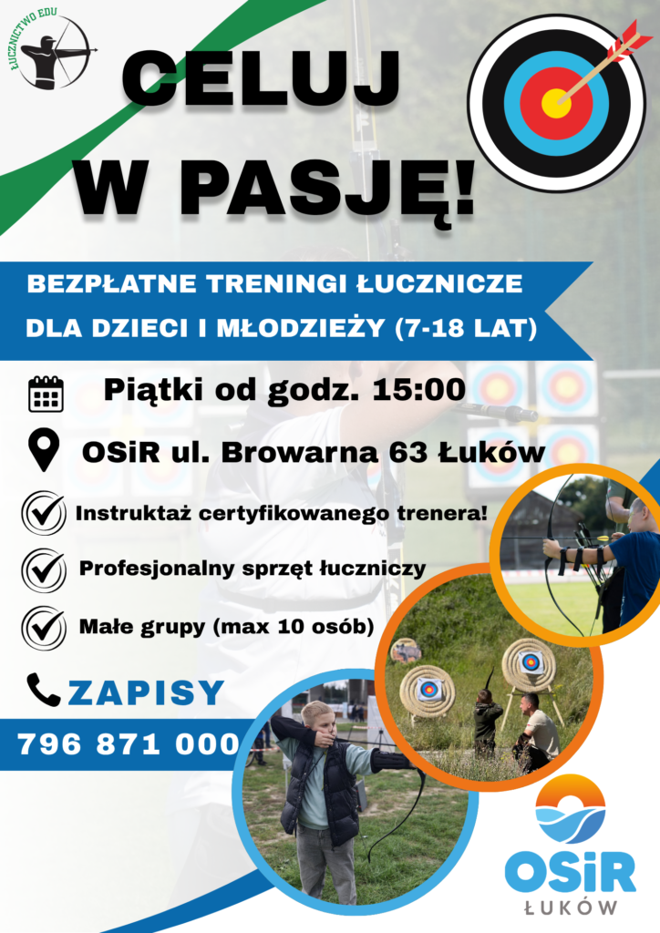 Wkrótce w Łukowie ruszają treningi łucznicze skierowane do dzieci i młodzieży w wieku 7–18 lat.