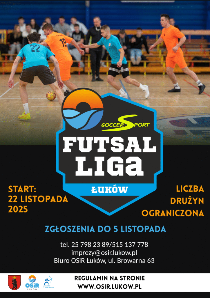 Państwa dane osobowe będą przetwarzane w celu, organizacji i promocji wydarzenia: Soccersport Futsal Liga Łuków pod patronatem Burmistrza Miasta Łuków – Załącznik Nr 1 – Zgoda na publikację danych osobowych.